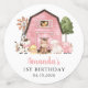 Add a personal touch to your birthday celebration with these stylish and memorable party items! Design features farm animals (cow, horse, sheep, pig, rooster, chicken) and pink barn on white background.