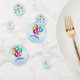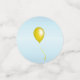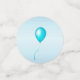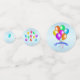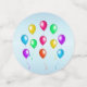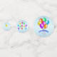 Ce confetti de table est bleu clair avec divers ballons festifs lumineux avec des serpentins en plusieurs couleurs. Les grands cercles ont une bannière bleue avec le texte Joyeux Anniversaire.