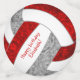 Ce joli confetti de fête d'anniversaire de volley-ball comporte des volleyballs rouges, gris et blancs avec du texte personnalisable à l'avant et à l'arrière de chaque pièce de confetti - par katz_d_zynes