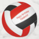 Ce confetti d'anniversaire de volley-ball avec du texte personnalisable pour les filles ou les garçons présente un graphique de volley-ball avec des panneaux rouges, noirs et blancs sur le devant de chaque pièce de confetti et un simple volley blanc ou l'âge de l'enfant sur le dos de chaque pièce de confetti avec un arrière - plan rouge - par katz_d_zynes