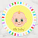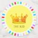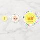 Raies multicolores élégantes et confettis de table de premier anniversaire de naissance. Joli visage et couronne bébé. Le texte peut être personnalisé.
