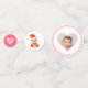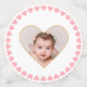 Table d'anniversaire bébé/enfant confetti encadré de coeurs roses. Une photo de bébé peut être customisée avec celle de votre bébé ou de votre enfant. Texte prêt à être personnalisé.