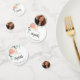 Un arrière - plan blanc chic décoré d'or rose, de fleurs rousses, de rose et d'eucalyptus. Personnalisez et ajoutez une photo, une date, un nom et un âge.