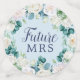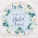 Ce confetti classique à fleurs blanches bleu nuptiale est parfait pour une douche de mariage de printemps. L'élégante décoration florale est composée de roses blanches et d'ivoire, de pivoines et de chrysanthèmes, avec des touches de fleurs d'aquarelle bleu périvent et de feuillage vert. Personnalisez le nom de la future mariée.