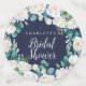 Ce confetti classique à fleurs blanches nuptiales est parfait pour une douche mariage de automne. L'élégante décoration florale est composée de roses blanches et d'ivoire, de pivoines et de chrysanthèmes, avec des touches de fleurs d'aquarelle bleu périvent et de feuillage vert. Personnalisez le nom de la future mariée.