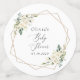 Ajoutez une touche personnelle à votre fête de baby shower avec ces objets de fête élégants et mémorables ! Le design présente des fleurs d'aquarelle blanche, de la verdure et un cadre doré sur un arrière - plan blanc.