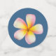Frangipani rose Plumeria Fleurs et coeur sur le bleu Mariage primé Table Confetti. Le texte peut être personnalisé pour les mariages, les anniversaires et les anniversaires. Les fleurs frangipaniennes sont synonymes de beauté et d'amour parfait.