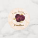 Célébrez votre anniversaire avec style. Chacun de ces magnifiques confettis sont fabriqués avec des images et des designs différents. La décoration est composée d'un groupe de papillons Gold et Orange qui floutent autour, d'un ballon Gold Number 70 sur un disque de couleurs en feuille de chocolat, d'un ballon Gold et Parties scintillant Party, d'un joyau orange avec chaîne et fil d'or attachés à la chute du ballon d'or numéro 70, et de beaux roses anglais bordeaux apportent une touche d'élégance florale. Tout est sur un arrière - plan en marbre orange clair. Personnalisé avec votre photo et votre nom.