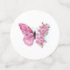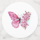 Flower arrangement of pink butterfly with rose Japanese cherry blossoms on white background.