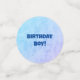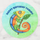 Ce confetti de table pour la célébration d'anniversaire d'un enfant a un amusant lézard festif avec de grands yeux tenant une feuille verte sur un bâton. Il se fait dans les couleurs vives de l'orange, du jaune, du bleu et du vert sur divers arrière - plans de blues et de grees. Customisez votre texte avec les modèles.