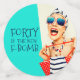 Un confetti d'anniversaire absolument drôle et unique pour une fabuleuse femme célébrant son 40e anniversaire, ce design présente une femme chic et chic en lunettes de soleil rayées et turban aux cheveux avec un sac à pois et une serviette rayée, en secouant son attitude. L'humour est réalisé dans le titre en gras "QUARANTE EST LA NOUVELLE F-BOMBE". Personnalisez le nom avec la fabuleuse fille d'anniversaire. Les couleurs rétro de l'aqua, du beige, de la marine et du rouge ajoutent à l'amusement de ce design.