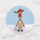 Illustration de Noël mignonne et drôle : Un renne portant le casquette du Père Noël avec des pas dans la neige.