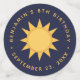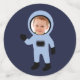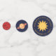 Les plus grands confettis ont un enfant astronaute avec une photo à insérer pour la tête, d'un côté, et le soleil entouré de texte jaune arqué en cercle, sur fond bleu.