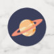 Les confettis du milieu ont une fusée d'un côté et la planète Saturne sur fond de ciel bleu de l'autre.