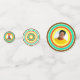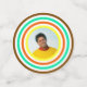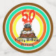 Joyeux 50e anniversaire - confettis de table d'anniversaire personnalisés, articles de papier d'anniversaire et fournitures de fête d'anniversaire. Un gâteau d'anniversaire au chocolat à trois niveaux au feu avec des bougies de 50 ans. Personnalisez le message d'anniversaire et le nom de la personne d'anniversaire. Combinaison de couleurs rétro turquoise, orange, jaune et marron pour cette ambiance des années 1970. Remplacez la photo par des photos de l'homme d'anniversaire ou de la fille d'anniversaire.