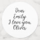 Modèle de texte personnalisable mignon : Chère Emily, je t'aime, Alexander. Cliquez sur Modifier et modifier uniquement les noms ou le texte entier.
