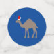 Ce magnifique confetti de Noël présente une image art numérique d'un mignon chameau dromédaire couleur sable brun avec de belles longues cils et une seule bosse sur le dos. Le chameau est habillé pour fêter Noël avec un chapeau de Père Noël rouge et blanc sur la tête. Le chameau figure dans la Bible et est un symbole traditionnel de Noël. Il y a du texte personnalisé pour que vous puissiez inclure vos propres messages.
