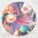 Fille's Birthday Party nom personnalisé, âge et confetti photo. Mignonne fille anime portant des casques avec des oreilles de chat et des patins à rouleaux. Thème de fête d'anniversaire de la fille de patinage rose et bleu mignon pour les gamers ou les amateurs de musique ou ceux qui aiment le thème de la fureur.