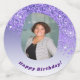 Chic Falling Parties scintillant violette avec dégradé violet, étoiles brillantes et photo. Idéal pour un 100ème anniversaire amusant.