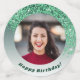 Chic Falling Parties scintillant verte avec dégradé vert, étoiles brillantes et photo. Idéal pour un 18ème anniversaire amusant.