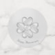 Elégant heureux anniversaire heureux porte-manteau en argent de table confetti. Joyeux Anniversaire peut être personnalisé. Le texte est seulement du côté avant des points moyens et grands. Le trèfle à quatre feuilles signifie amour universel. Que l'amour soit toujours présent dans toutes nos célébrations ! ! !