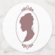 Roses roses douces et élégants détails de style Bridgerton Regency encadrent deux camées féminins classiques, le tout dressé contre un arrière - plan blanc propre.