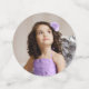 Create your own confetti by uploading personal photos and adding your custom text using this easy to edit DIY template, available in small, medium, and large circle options. The original fairy tale artwork by Raphaela Wilson showcases a dreamy ombre of soft lavender and lilac watercolor roses accented with silver accented leaves / foliage, shimmering faux silver butterfly confetti, and a sparkling princess tiara / crown for a magical touch. Perfect for a quinceañera, a fun idea is to include 2 photos - one from childhood and one current Mis Quince Años portrait to beautifully symbolize her journey. This personalized floral photo confetti brings a heartfelt and decorative element to your table decor for a birthday party, a lavender wedding, princess-themed baby shower, sweet 16 / 15, graduation, and other cherished celebrations. Not only does it enhance your decorations with a pop of color and sparkle, but it also allows you to share a meaningful thank you message with guests on the back of the medium-sized confetti piece. The elegant calligraphy and modern fonts can be kept as-is or customized to match your typography style. You can even add a third photo by replacing the light purple rose on the small confetti dot. Enjoy! Category: XV / 15th birthday party confetti; elegant confetti with photos; and thank you table confetti with butterflies. Light purple and silver party theme colors: girly lavender, lilac, light dusty purple pastel, amethyst, light gray, dark grey, black and white.