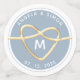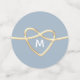 Confettis de mariage bleu poussiéreux élégants, modernes et minimalistes avec monogramme - initiale, noms de la mariée et du marié et coeur de corde dorée.