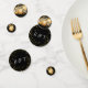 Confetti en papier à utiliser comme vaisselle de réception de mariage pour une réception de mariage, un dîner de répétition ou une douche nuptiale, avec le thème de la Faire-part de mariage de Noël Noir d'or.
