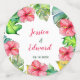 Table Mariage colorée Confetti avec une couronne tropicale comprenant de belles fleurs d'Hibiscus, et feuilles tropicaux de différentes couleurs autour des noms du couple aimant et "Merci" à l'arrière. Idéal pour une magique réception estivale au bord de la plage, à l'image d'un Luau hawaïen. Vous pouvez modifier le texte à partir du menu Personnaliser et le customiser plus loin avec les outils fournis. Si vous avez besoin d'aide et pour d'autres produits correspondants, veuillez me contacter.
