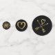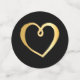Ajoutez un peu d'éclat à la réception de mariage ou à la table de répétition avec cet élégant ensemble de confettis de table. Les images en vedette sont une ligne d'or dessinée coeur et flèches, un 2ème coeur d'or, et votre texte personnalisé en or. L'image restante est une étoile répétée et un arrière - plan parties scintillant. Tout est placé sur un arrière - plan noir dramatique. Classique !