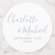 Confettis de table de mariage élégant signature poussiéreux bleu personnalisés avec les noms de style de signature, date de mariage spéciale et message. Conçu par Thisisnotme©