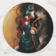Un décor chaleureux de couleur orange et marron donne le ton de ce design mariage de steampunk, avec une horloge vintage, des engrenages et des lignes marron. Au centre, un couple victorien vêtu de sa plus belle tenue steampunk