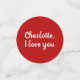 Will You Marry Me rouge et blanc nom de script personnalisé proposition de jolie partie personnalisée Confetti. Elégant faux or mignon et rouge pourpre. Fiançailles romantique de Noël, proposition de mariage. Un ornement double face.