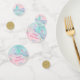 Ce confetti de table douce présente une queue de sirène colorée avec des ornements de parties scintillant en faux or.