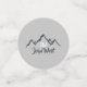 Monographie personnalisée de la chaîne de montagnes tracée en ligne. Montagnes dessinées vectorielles en bleu gris avec un monogramme personnalisable et votre nom. Grand cadeau de quelqu'un qui aime les montagnes.