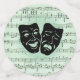 Le talent artistique prend de nombreuses formes et quand ils s'unissent, il est spectaculaire. Les masques de théâtre grecs de comédie et de tragédie se trouvent sur une feuille de musique