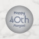 Ajoutez une touche personnalisée aux décorations de fête d'anniversaire avec des confettis de table bleu marine et gris argenté personnalisés. Ce modèle est mis en place pour une célébration du 40e anniversaire "Cheers to 40 Years", mais il est simple à customiser pour n'importe quel nombre d'années. Le design est composé d'un arrière - plan imprimé de faux papier moderne, d'une calligraphie de script élégante et d'une typographie vintage élégante. Veuillez noter que l'argent est imprimé gris foncé couleur, pas de papier métallique. Ce confetti de table festive ajoute une touche customisée unique à une fête marquant spéciale pour lui. Bonjour et Joyeux anniversaire !