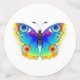 Arc-en-ciel, réaliste, artistiquement dessiné, couleurs vives papillon paon avec ailes texturées détaillées sur arrière - plan blanc. Papillon arc-en-ciel.