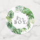 Ce palmier tropical sauvage, c'est un confetti de table de baby shower garçon, est parfait pour un baby shower à thème de plage. Le design comprend un éventail exotique de feuilles de bananiers d'aquarelle verte, fougères, feuillage, plantes botaniques et verdure pour une sensation tropicale estivale. Personnalisez les noms du bébé et de la future maman.