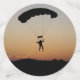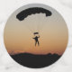 La chute de parachute Skydiver au coucher du soleil offre une grande silhouette juste avant l'atterrissage. Parfait git pour les passionnés d'aviation, les parachutistes, les parachutistes et ceux qui s'intéressent à l'armée, le vol et la plongée sous-marine.