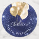 Un arrière - plan bleu marine avec d'élégants faux étincelles et des ballons d'or. La couleur bleue est inégale. Personnalisez et ajoutez une photo, un nom et un âge. Lettres blanches.