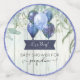 "Ballons de Parties scintillant bleu marine et argent Eucalyptus Baby Boy Douche Confetti pour Décor de fête." Panneaux de clôture en bois de cottage peints à la main, avec un panneau en bois bleu marine foncé et cinq ballons irisés et décorés de parties scintillant avec des lumières scintillantes accrochés aux eucalyptus boisés pour un cadre rustique et décontracté pour la douche de votre bébé garçon ! Art par Audrey Jeanne Roberts, artiste titulaire d'une licence internationale, copyright.