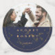 Photographie de couple sur mesure recouverte de parties scintillant dorée contre l'arrière - plan bleu marine chic et de luxe Confetti.