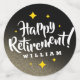 Avec des lettres manuscrites ludiques avec des étoiles stylisées et de la parties scintillant dorée s'estompant vers des arrière - plans noirs et jaunes chauds poussiéreux, ces confettis festifs de retraite peuvent vous aider à préparer la fête de la retraite parfaite. Ajoutez le nom de la messagerie honorée et/ou personnalisée selon vos besoins. Design © W.H. Sim. Voir plus sur zazzle.com/expressionsoccasions