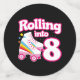 Ce design de fête de patinage est parfait pour une fête de patinage à rouleaux ou un thème d'anniversaire pour un enfant de 8 ans. Si la fille d'anniversaire ou le garçon d'anniversaire aime le roller skate, ils AImeront ce skate party design! Caractéristiques style rétro "Rolling in 8" citation d'anniversaire avec graphique à rouleaux cool avec arc-en-ciel et étoiles qui est amusant et unique. Fun roller skate design pour un 8ème anniversaire!