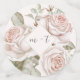 Pretty Pastel Peach Watercolor Rose Floral Mariage Confetti présente Monograms de Bride et Groom, Noms et Date Mariage, joli script d'amour, et deux photos.