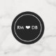Table romantique confetti pour les fêtes de mariage ou de fiançailles personnalisées avec des photos du couple heureux, et vos initiales avec un coeur en noir et blanc.