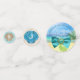 Améliorez vos tables de réception de mariage avec ce design lumineux et joyeux, avec des plages de sable blanc et doré et des ciels bleus rehaussés par des lumières de bokeh, décoré de bijoux en pierres émeraude, arc turquoise, coquillages et feuilles de palmiers frais. Votre photo de couple Instagram préférée est présentée sous un cadre rond avec bande dorée brillante. Parfait pour les mariages sur la plage, les mariages de destination, les mariages tropicaux, les mariages insulaires, les mariages d'été et d'autres lieux liés à la mer. Visitez la collection pour voir l'ensemble de la suite. (REMARQUE IMPORTANTE : Cette conception n'est pas faite de pierre à gemme ou de tissu réel. Tous les éléments sont des graphiques ou des photos numériques et imprimés sur une surface plane.)