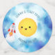 Préparez-vous pour un anniversaire hors du monde ! Ce système solaire super mignon est doté d'un soleil souriant, d'une variété de planètes et d'un vaisseau-fusée qui explose dans l'espace. Le libellé modifiable comprend "Voyage autour du soleil". Le Rocket ship peut être customisé avec l'âge pour votre propre astronaute